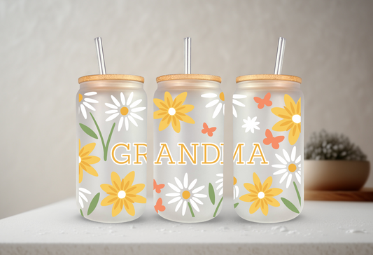 Summer Meadow - Grandma | UVDTF | 20 oz Libbey Can Glass with Bamboo Lid & Straw