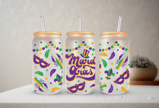 Mardi Gras | UVDTF | 20 oz Libbey Can Glass with Bamboo Lid & Straw