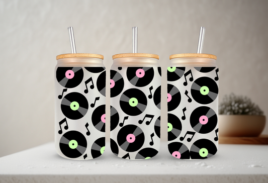 Records | UVDTF | 20 oz Libbey Can Glass with Bamboo Lid & Straw