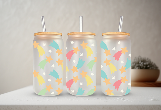 Shooting Stars | UVDTF | 20 oz Libbey Can Glass with Bamboo Lid & Straw