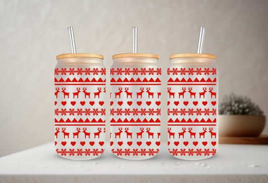 Knitted Christmas | UVDTF | 20 oz Libbey Can Glass with Bamboo Lid & Straw