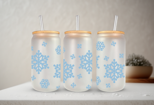 Snowflake | UVDTF | 20 oz Libbey Can Glass with Bamboo Lid & Straw
