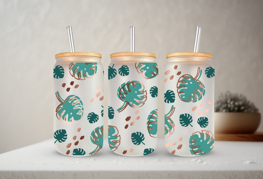 Monstera | UVDTF | 20 oz Libbey Can Glass with Bamboo Lid & Straw
