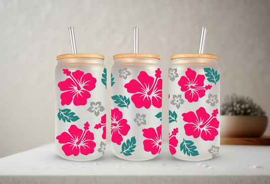 Hibiscus | UVDTF | 20 oz Libbey Can Glass with Bamboo Lid & Straw