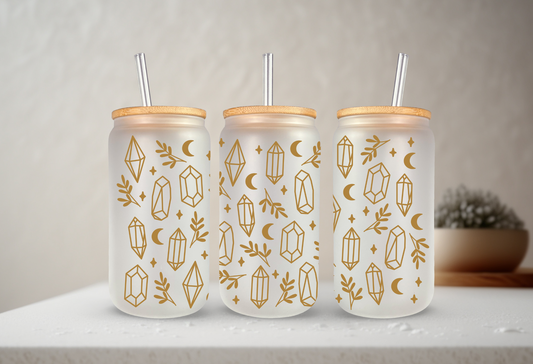 Crystals | UVDTF | 20 oz Libbey Can Glass with Bamboo Lid & Straw