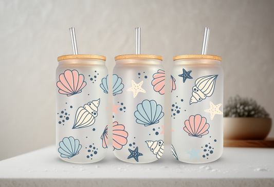 Seashells | UVDTF | 20 oz Libbey Can Glass with Bamboo Lid & Straw