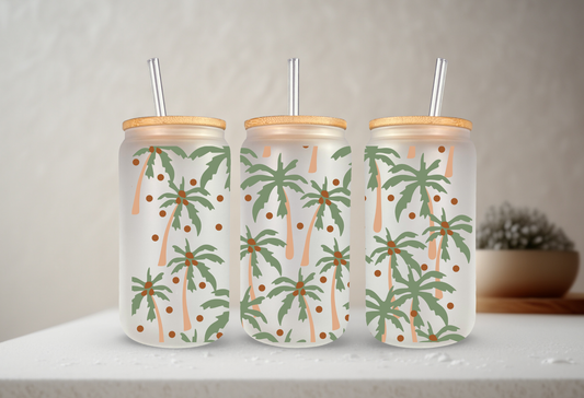 Palm Trees | UVDTF | 20 oz Libbey Can Glass with Bamboo Lid & Straw
