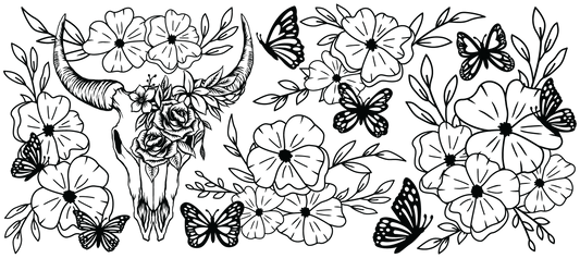 Floral Bull Skull | UVDTF | 40 oz Glass Tumbler with Bamboo Lid & Straw
