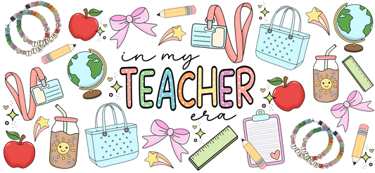 In My Teacher Era | UVDTF | 40oz Glass Tumbler with Bamboo Lid & Straw