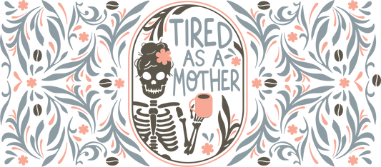 Tired As A Mother | UVDTF | 40 oz Glass Tumbler with Bamboo Lid & Straw