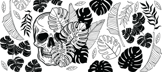 Monstera Skull | UVDTF | 40 oz Glass Tumbler with Bamboo Lid & Straw