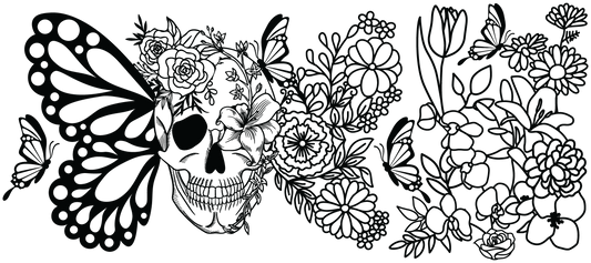 Skull Butterflies | UVDTF | 40 oz Glass Tumbler with Bamboo Lid & Straw