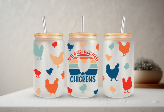 Just A Girl Who Loves Chickens | UVDTF | 20 oz Libbey Can Glass with Bamboo Lid & Straw