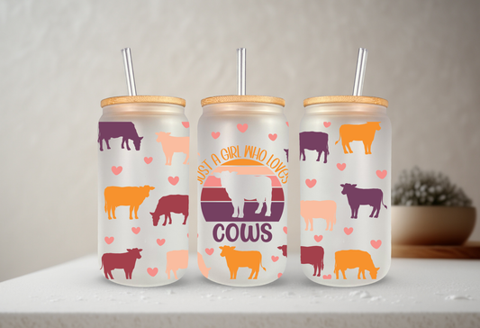 Just A Girl Who Loves Cows | UVDTF | 20 oz Libbey Can Glass with Bamboo Lid & Straw
