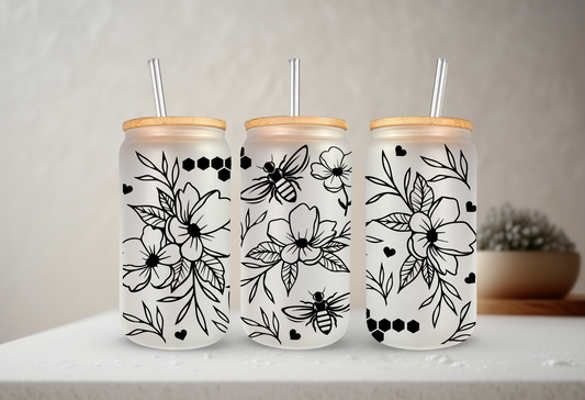 Flowers and Bees | UVDTF | 20 oz Libbey Can Glass with Bamboo Lid & Straw