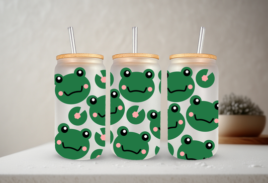 Frogs | UVDTF | 20 oz Libbey Can Glass with Bamboo Lid & Straw