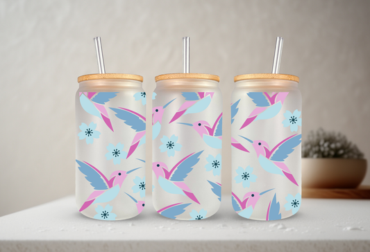Hummingbirds | UVDTF | 20 oz Libbey Can Glass with Bamboo Lid & Straw