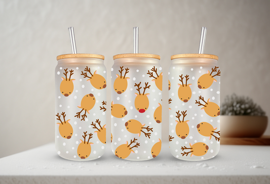 Reindeer | UVDTF | 20 oz Libbey Can Glass with Bamboo Lid & Straw