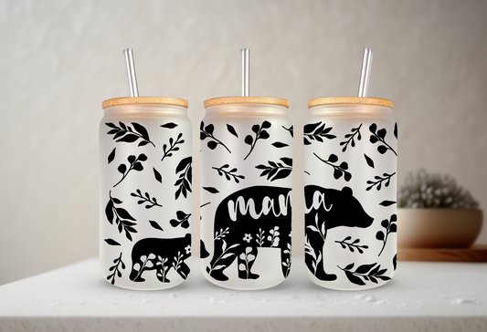 Mama Bear | UVDTF | 40 oz Glass Tumbler with Bamboo Lid & Straw