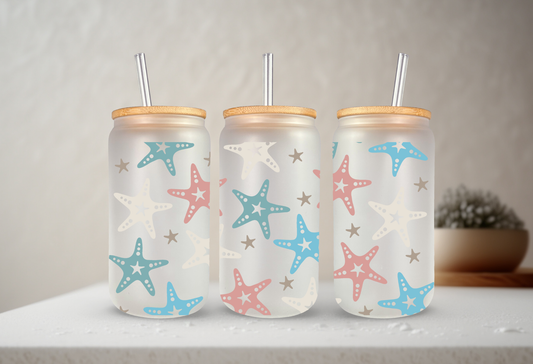 Starfish | UVDTF | 20 oz Libbey Can Glass with Bamboo Lid & Straw