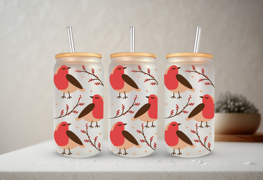 Robins | UVDTF | 20 oz Libbey Can Glass with Bamboo Lid & Straw