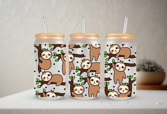 Sloths | UVDTF | 20 oz Libbey Can Glass with Bamboo Lid & Straw