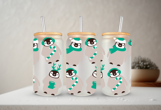 Penguin | UVDTF | 20 oz Libbey Can Glass with Bamboo Lid & Straw