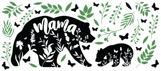 Mama Bear [1 or 2 babies] | UVDTF | 20 oz Libbey Can Glass with Bamboo Lid & Straw