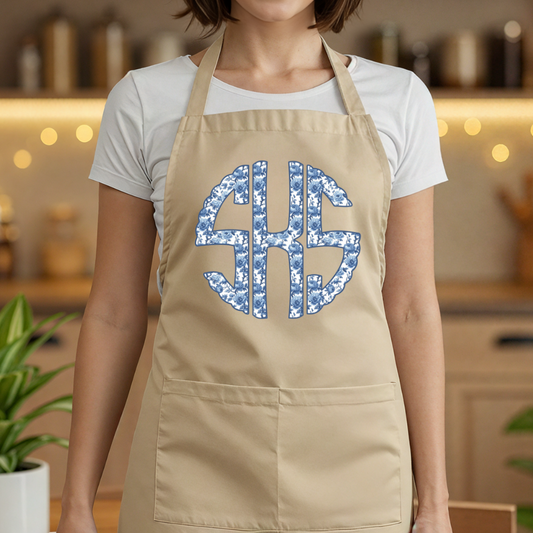 Blue Chinoiserie Monogram | Apron with Pocket