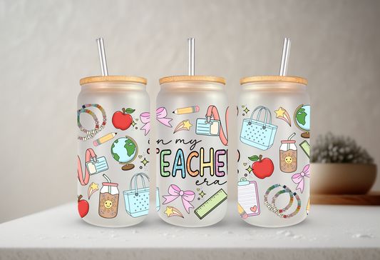 In My Teacher Era | UVDTF | 20 oz Libbey Can Glass with Bamboo Lid & Straw