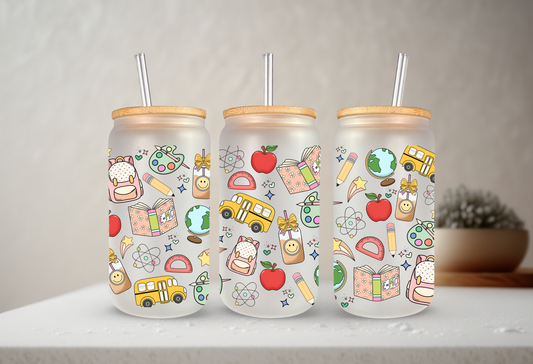Teacher Apples & Pencils | UVDTF | 20 oz Libbey Can Glass with Bamboo Lid & Straw