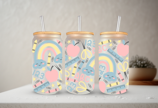 Teacher Rainbows | UVDTF | 20 oz Libbey Can Glass with Bamboo Lid & Straw
