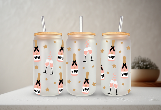 Champagne | UVDTF | 20 oz Libbey Can Glass with Bamboo Lid & Straw