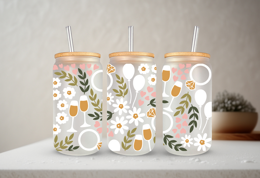 Bridal Engagement | UVDTF | 20 oz Libbey Can Glass with Bamboo Lid & Straw