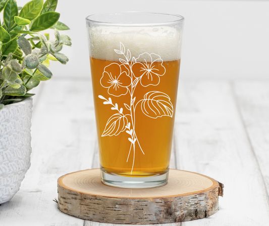 Flowers | Birth Flowers | ENGRAVED | 16 oz Pint Glass