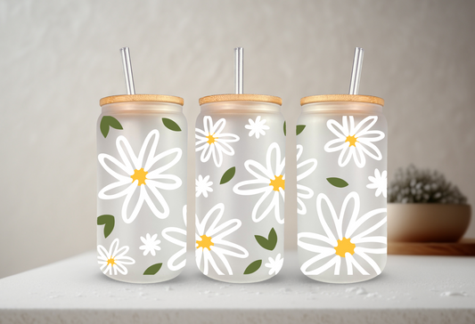 Summer Daisies | UVDTF | 20 oz Libbey Can Glass with Bamboo Lid & Straw