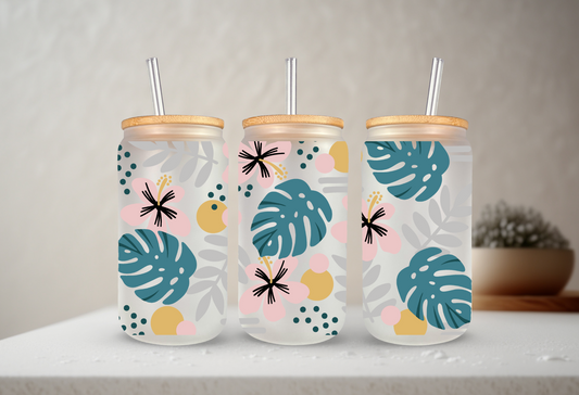 Hawaiian Floral | UVDTF | 20 oz Libbey Can Glass with Bamboo Lid & Straw