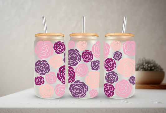 Roses | UVDTF | 20 oz Libbey Can Glass with Bamboo Lid & Straw
