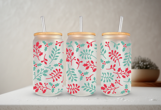 Holly | UVDTF | 20 oz Libbey Can Glass with Bamboo Lid & Straw