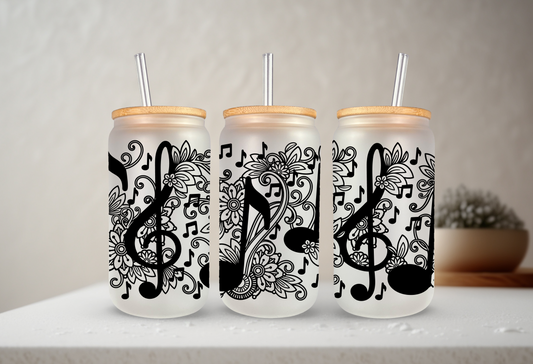 Floral Music | UVDTF | 20 oz Libbey Can Glass with Bamboo Lid & Straw