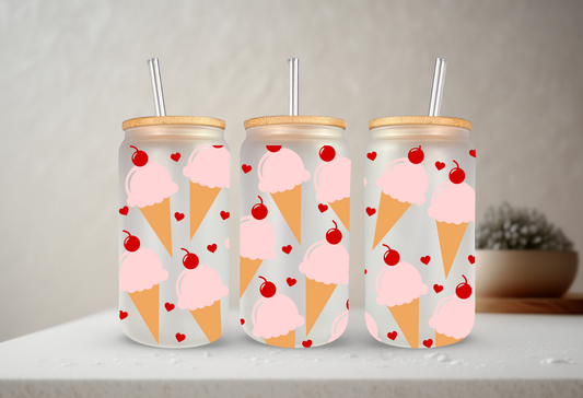 Ice Cream Cones | UVDTF | 20 oz Libbey Can Glass with Bamboo Lid & Straw
