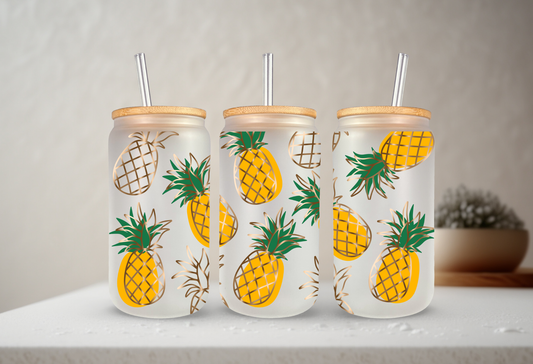 Pineapples | UVDTF | 20 oz Libbey Can Glass with Bamboo Lid & Straw