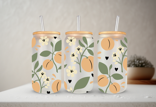 Peaches | UVDTF | 20 oz Libbey Can Glass with Bamboo Lid & Straw