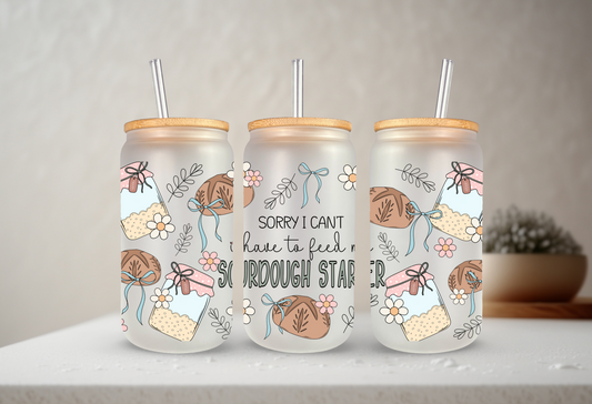 Sorry I Can't, I Have To Feed My Sourdough Starter | UVDTF | 20oz Libbey Can Glass with Bamboo Lid & Straw