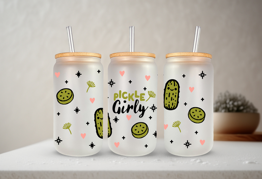 Pickle Girly | UVDTF | 20 oz Libbey Can Glass with Bamboo Lid & Straw