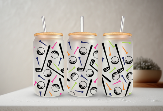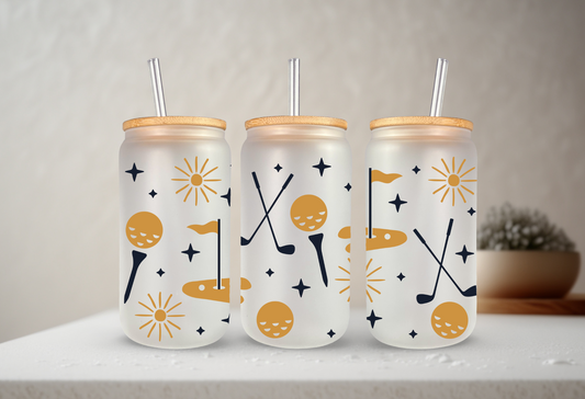 Golf | UVDTF | 20 oz Libbey Can Glass with Bamboo Lid & Straw