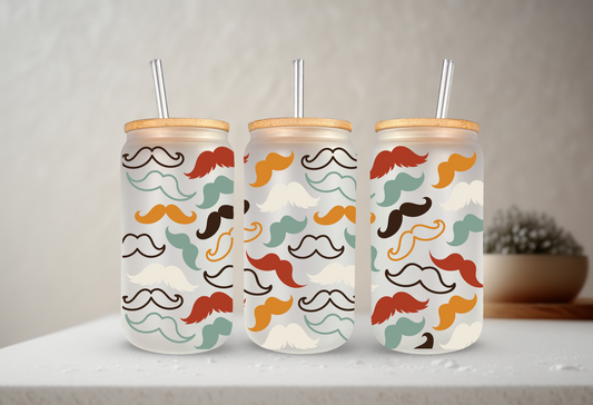 Mustache | UVDTF | 20 oz Libbey Can Glass with Bamboo Lid & Straw