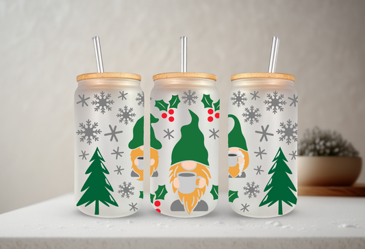 Christmas Gnomes | UVDTF | 20 oz Libbey Can Glass with Bamboo Lid & Straw
