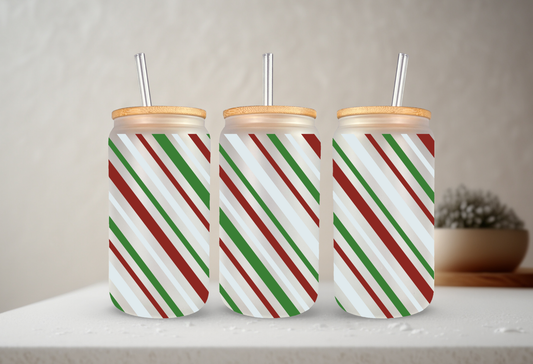 Christmas Stripes | UVDTF | 20 oz Libbey Can Glass with Bamboo Lid & Straw