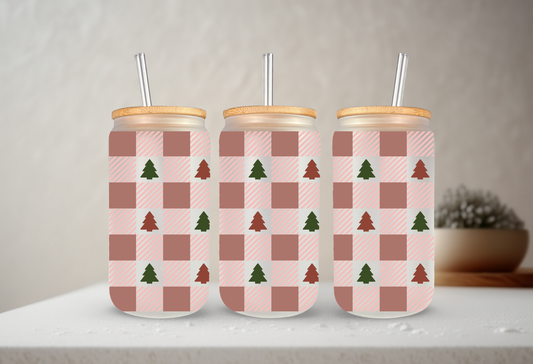Christmas Plaid | UVDTF | 20 oz Libbey Can Glass with Bamboo Lid & Straw